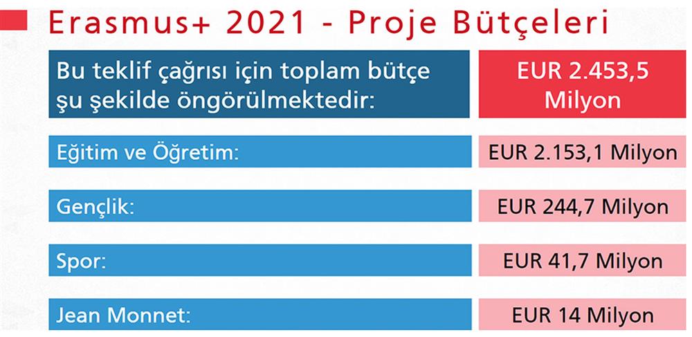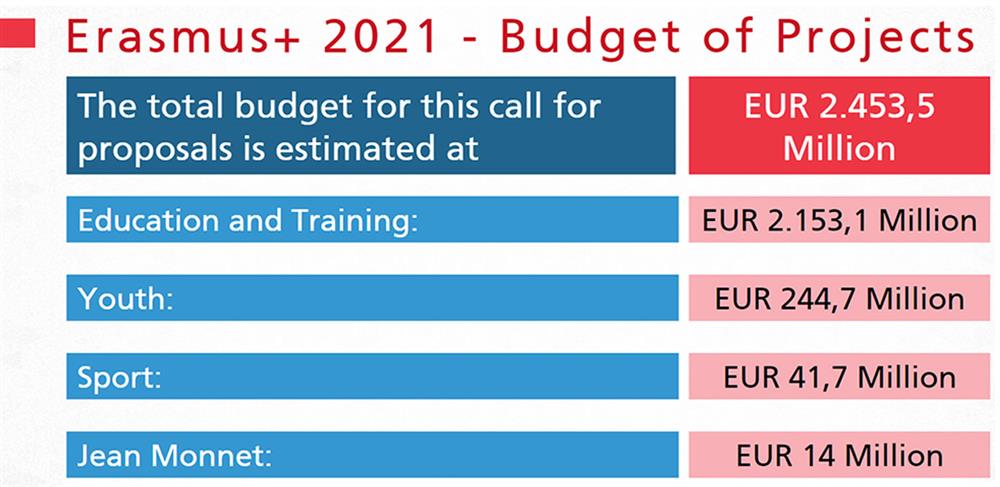 Program yalnızca yükseköğretimi değil, aynı zamanda "Erasmus+" adı altında tüm eğitim ve öğretim kademlerini ve türlerini kapsamaktadır. Program için 26 milyar Euro’luk bir bütçe tahsis edilmiştir. Bu bütçe rakamı önceki programa göre önemli bir artış anlamına gelmektedir.